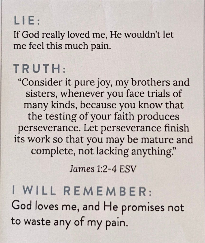 During thanksgiving break, when I saw that my Alex wasn’t delivered from her binge eating and I’d find hoards of foods gone from the pantry and fridge; I was starting to fall into despair. Again my husband and I had no idea what to do and we still differ in our opinions about how to approach this with her. Not having a likeminded spouse in faith really sucks during difficult times. Satan used this opportunity to hurl many doubts into my mind and without me realizing it, my heart was hardening in a matter of a day or two!