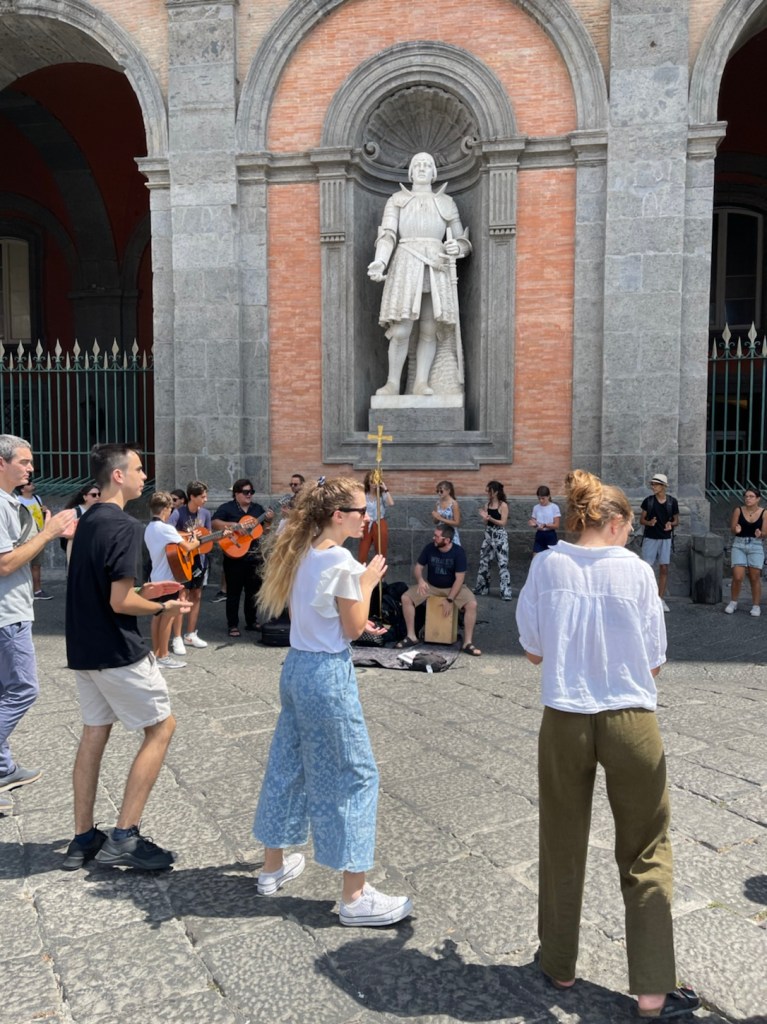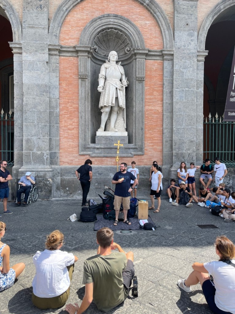 On our last day there with a tour guide in Naples, we came across street evangelism! Young people attracted a crowd near the Royal Palace of Naples by their singing. Then someone went out in the center and started preaching with a Bible in his hand. I didn’t understand what he was saying but our tour guide said he is preaching, and perhaps he is being trained to become a priest. Our tour guide said there’s a great shortage of priests in Italy and so he supports Italians going into church ministry. I did not understand what this young man was saying but this group acted and sang like evangelical Christians, not a Catholic priesthood. It was a wonderful blessing to see this happening in Italy on my last day! Thank you Holy Spirit for showing me this beautiful light of your people in secular Italy. As the world gets darker and harder, I pray that these evangelical Italian believers will be brave and continue to preach and sing publicly. Fill them up Lord daily! Keep them safe from the many temptations for young people in their country. 🙏