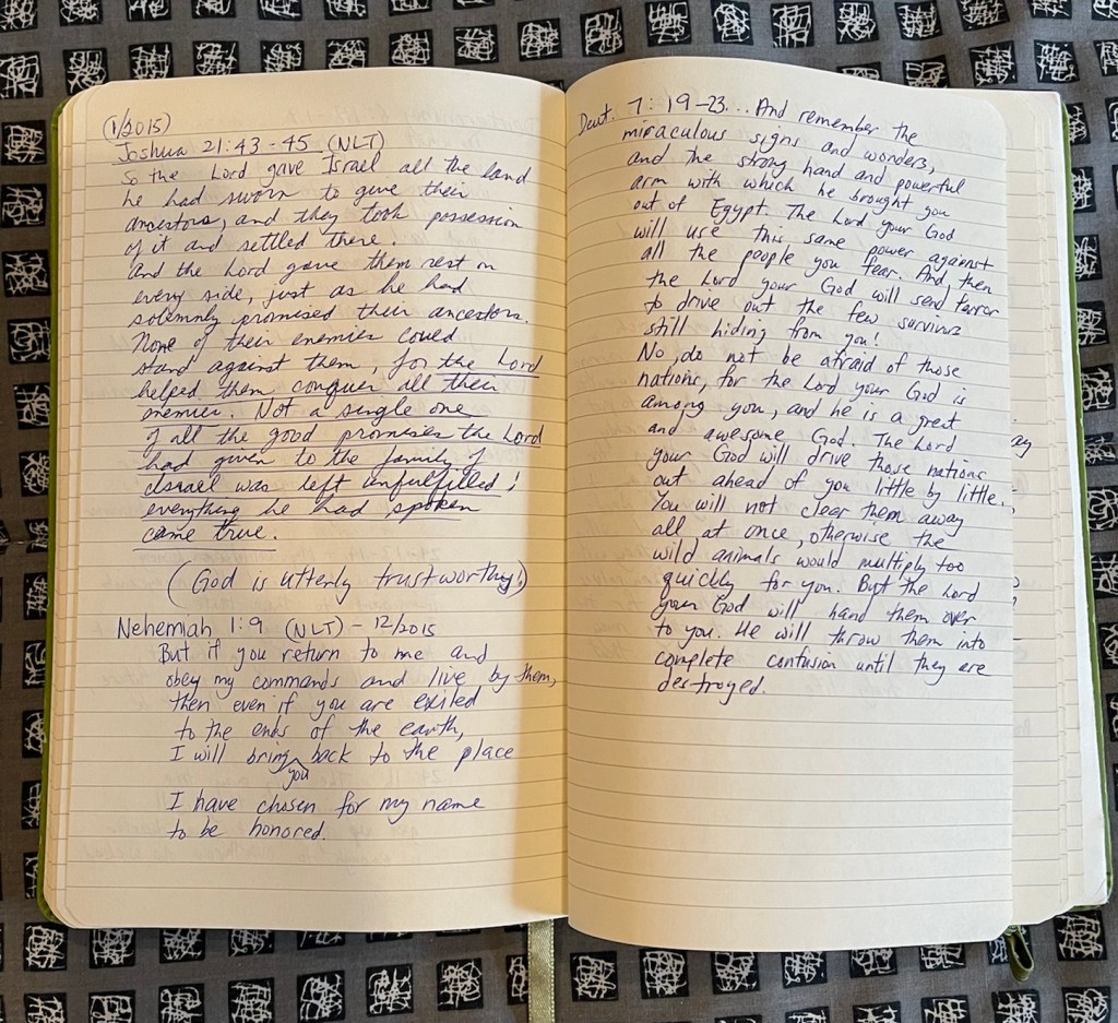 If you are not having much victory during the enemy’s assaults and harassments, please do what I did and start handwriting good and meaningful bible verses in your own notebook. Eventually it became a game of tit-for-tat with the enemy and I would say “oh yea, come out and attack me! I’ll write and study even more!” I noticed that the enemy hated it when I studied the Bible. I found the secret to winning over the nasty bully and I am sharing this easy and simple strategy with you. I’ve attached a few photos of my handwritten bible verses notebook. I was just thinking that one day this would be a great legacy notebook to pass down to my children or grandchildren.