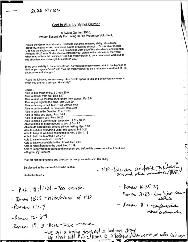 1. Below is a vision sheet shared by MIP NJ state leader, Karen that I saved in 2020 before the world came to a screeching halt in March. I took personal notes on the side if you want to read my notes and bible verses jotted down during the teleconference meeting. It gives you an idea of what MIP is all about. I hope it will inspire you as much as it blessed me to read it again in 2023.