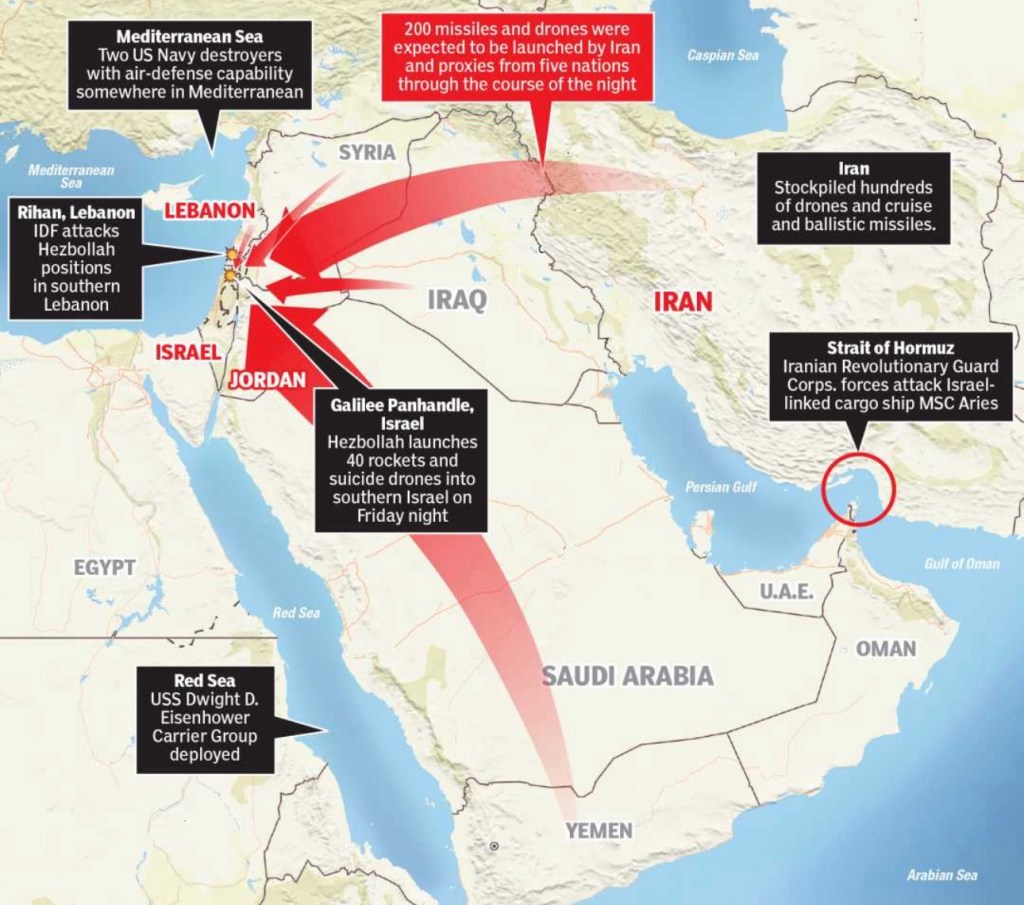 (I shared this message with my prayer group on Saturday morning. By early evening, Iran attacked Israel with 300 missiles through the night. My church was quiet about this on Sunday morning. They have not addressed the issues at all regarding Israel. It’s a shame that they are playing it safe. I liked how this church in Dallas spoke firmly about their support for Israel. – https://ptv.org/israel/